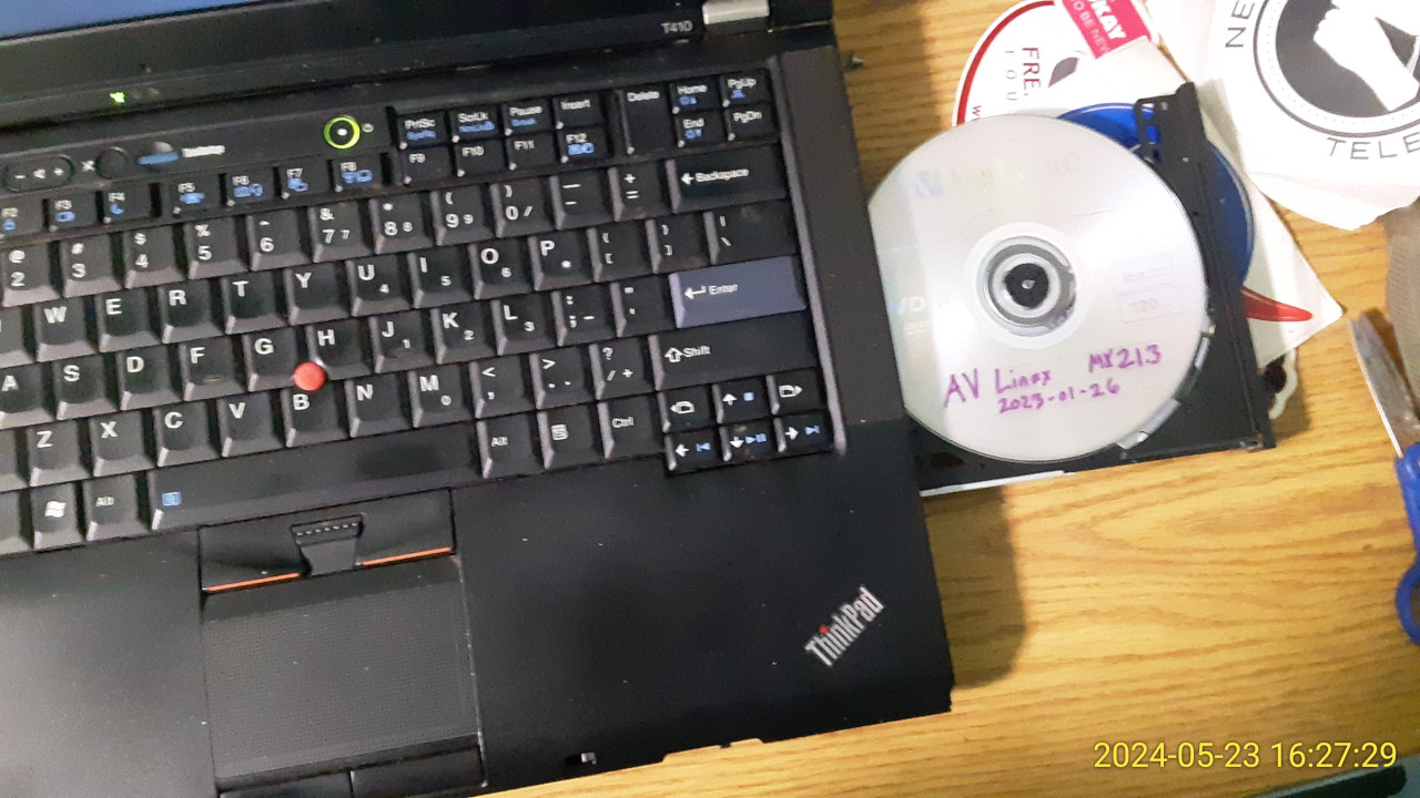 This machine had Ubuntu Studio on it and some of Rosalyn’s original data on it. So I first made a USB stick copy of the data for her, and ran the AV Linux installation. This time I went for the simpler arrangement of installing to a single large partition.