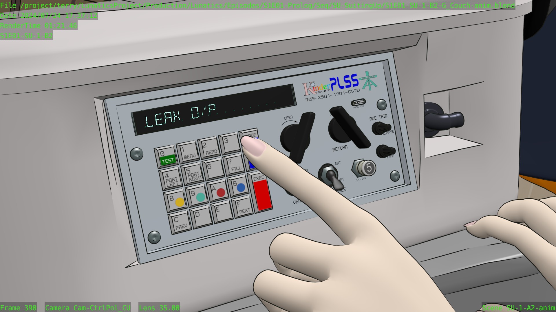 Started blocking the shot file for the new “PLSS control panel” animation.