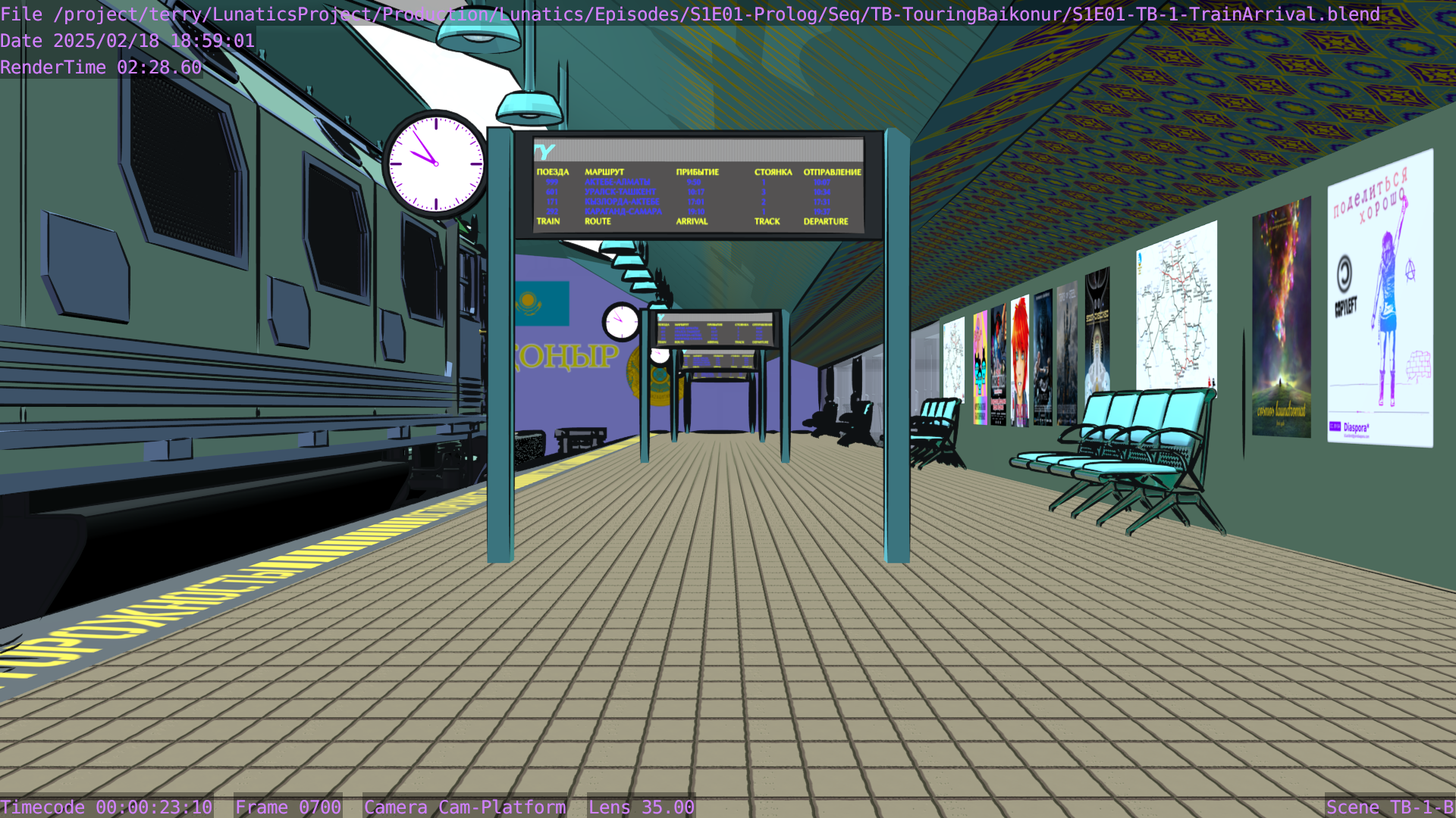Perhaps a more serious inking problem was that the ink drawing of the train wheels sometimes appeared through the train platform in the train arrival shots, due to the way objects are clipped for Freestyle processing. This has (mostly) been eliminated now.