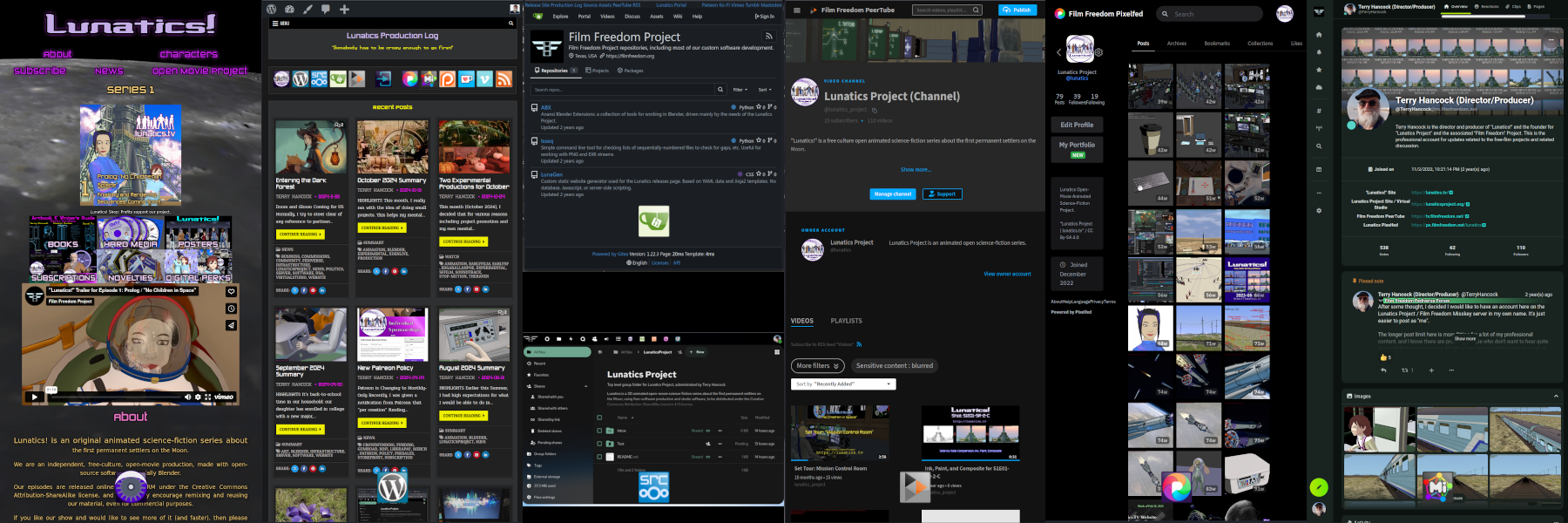 - Nextcloud / studio.filmfreedom.net (file sharing, production sources, collaboration, and other office features)